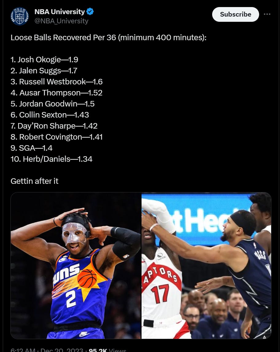 To the general public (bunch of dummies right) Toumani (the 52nd pick in this year’s draft) probably appeared to be a throw-in to the Dame trade much like Jordan Goodwin was to the Beal trade but a bunch of reports said that Phoenix didn’t want to part with Toumani in that trade and now we understand why. He rules. He’s already a genuinely high-level defender who routinely guards All-Star caliber wings and takes pride in doing so and busts his ass 100% of the time. That hustle doesn’t always lead to a basket or a steal but sometimes it does.